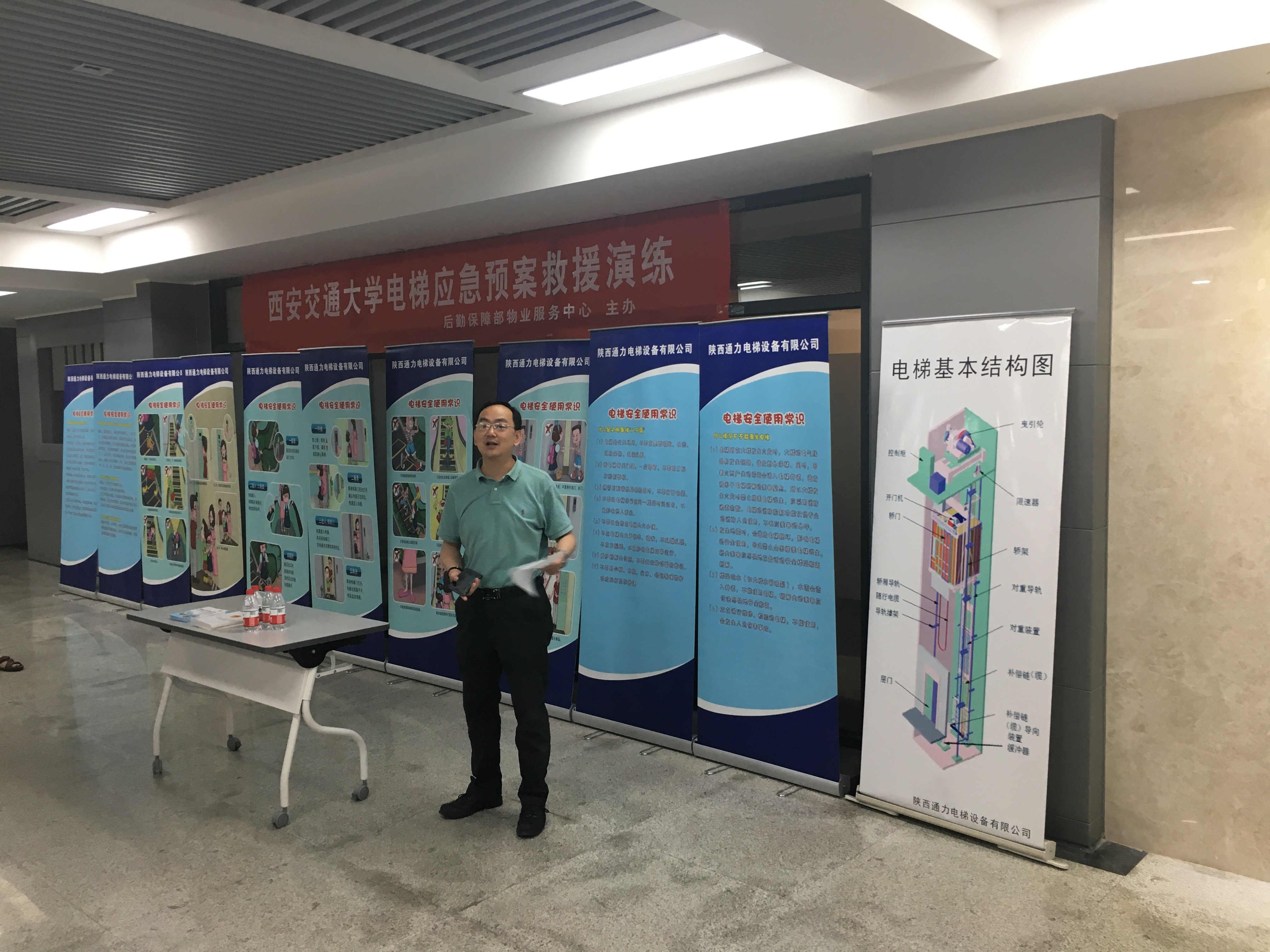 为了普及乘坐电梯的安全规定,传播事故发生时的自我保护常识,6月28日上午,91国产 电梯应急预案救援演练在北二楼举行,91国产 工会主席王海军,后勤保障部物业服务中心楼宇部副部长宋拥军,陕西通力电梯设备有限公司安全经理何敏军以及全校40余位师生代表参加了演练。