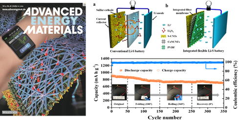 西安交大科研人员在柔性电池研究领域取得重要进展 随着人们对于便携式可穿戴电子设备(如折叠手机、可穿戴检测器、智能手环等)日益增长的需求,研发兼具高能量密度和柔性的能源存储设备备受关注。锂硫电池(2600 Wh kg−1)具有远高于目前商业化锂离子电池(<350 Wh kg−1)的理论能量密度,被认为是“后锂电池时代”最具前景的储能器件之一。但是,锂硫电池仍然存在诸多问题,如可溶性多硫化物在正负极间...