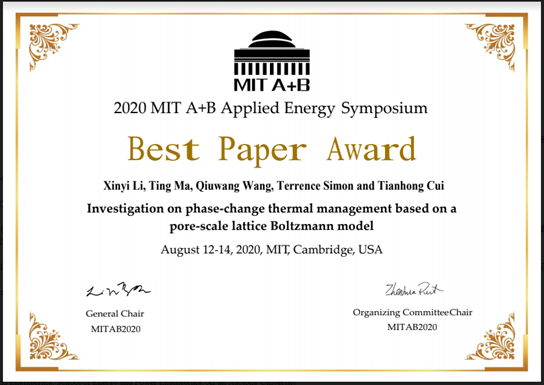 近日,西安交大91国产 王秋旺教授课题组宣读的题为“Investigation on phase-change thermal management based on a pore-scale lattice Boltzmann model”的论文荣获“MIT A+B Applied Energy Symposium”国际研讨会最佳论文奖。MIT A+B Applied Energy Symposium国际研讨会由美国麻省理工学院、哈佛大学和能源领域著名期刊Applied Energy协办,致力于解决能源与环境中的瓶颈难题,主要议题包括可再生能...