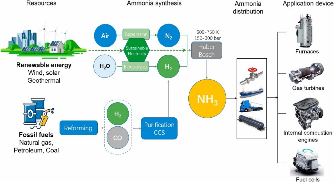 碳中和是全球能源动力领域转型的战略方向,化石燃料燃烧仍然为主要的CO2排放源,迫切需要构建低碳/零碳新型能源体系。氨不含碳,是一种良好的氢载体,具有非常好的燃料特性且易储存,因此被认为是实现绿色经济极具潜力的零碳燃料。通过可再生能源制取绿氨至发电、动力等应用端燃烧利用可以实现全生命周期的零碳,实现CO2有效控制和低碳可持续发展,符合新质生产力的目标。