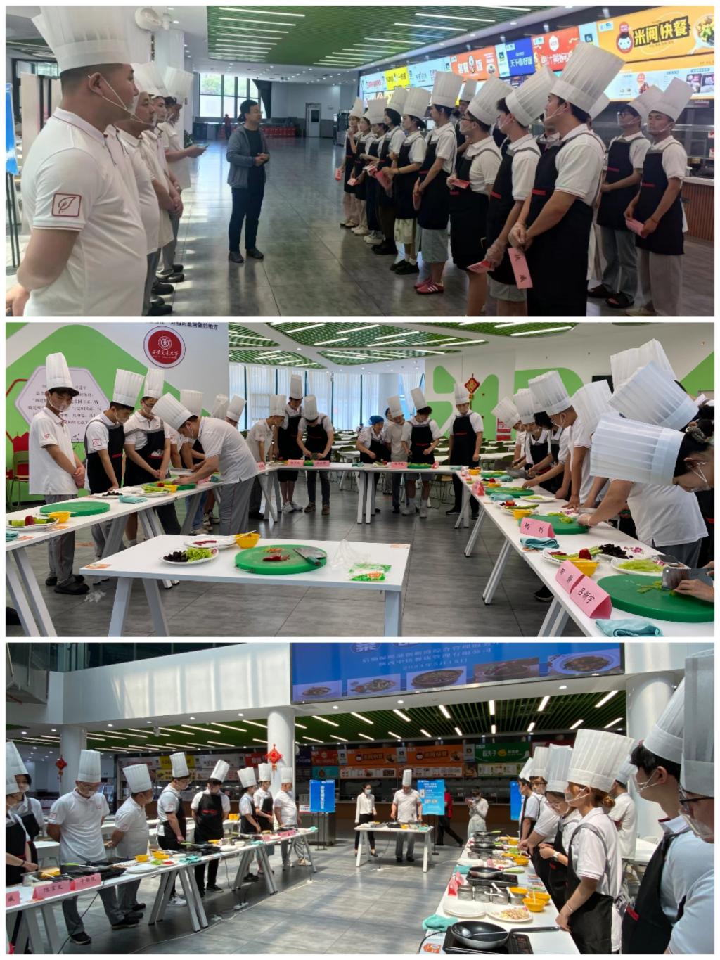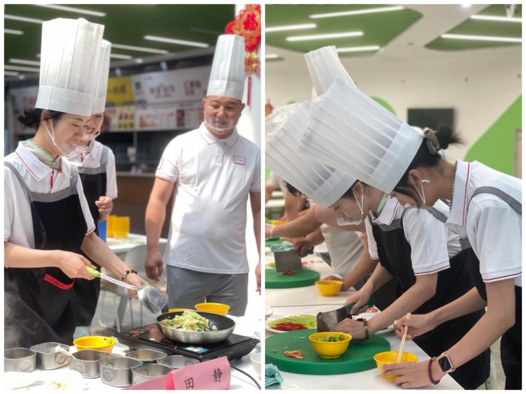 活动中,厨师长首先讲解了活动流程,同学们两两组队,每组配备一名厨师进行具体指导。随后开展切配菜学习,厨师们演示完要点后同学们亲自动手实践,先是挑选食材,然后进行精细的切割和搭配,搭配完成后进入烹饪区,通过切菜、炒菜等工序完成了自己的菜品,充分感受烹饪的乐趣和挑战。本次活动不仅提升了学生的烹饪技能,同时加强了团队合作意识和团队协作能力,加深了对彼此的了解和信任。