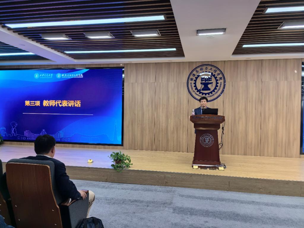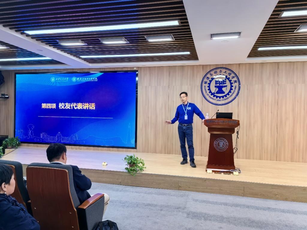 流体机械及工程系主任刘立军教授作为教师代表发言。刘立军教授表示,看到校友们在各自的领域取得卓越的成就,感到无比的骄傲和自豪。希望校友们能够保持初心,继续前行,在人生的道路上不断创造新的辉煌。