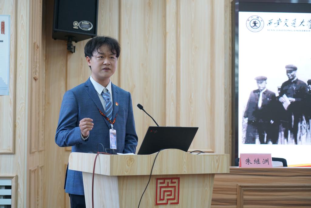 紧接着,朱继洲老教授为大家带来了一场题为《弘扬爱国奋斗的西迁精神,致敬西迁老前辈》的生动党课。他结合自己的亲身经历,详细讲述了西迁的完整历程和感人故事,深刻阐述了西迁精神的核心——爱国主义的内涵。朱教授还分享了西迁先贤钟兆琳、陈大燮、殷大均、周惠久、陈学俊等人的光辉事迹,以及他们的传承人卢秉恒、陶文铨、郭烈锦等教授的卓越成就。他深情地鼓励大家认真学习专业知识,积极探索、不断创新,传承和发扬老一辈西迁教授胸怀大局、无私奉献、艰苦创业的西迁精神,努力成为新一代服务西部的西迁新传人。
