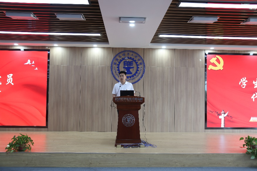 优秀党员代表杨雯博代表广大学生党员向伟大的党致以崇高的敬意和祝福,同时表达了作为一名学生党员,应当贯彻落实“思想意识过硬,政治作风优良”、“扎根学术,努力钻研前沿科技,回应国家重大战略需求”、“立足人民,服务社会,始终发挥先锋模范带头作用”等要求,并要肩负党和人民的重托不断前行。
