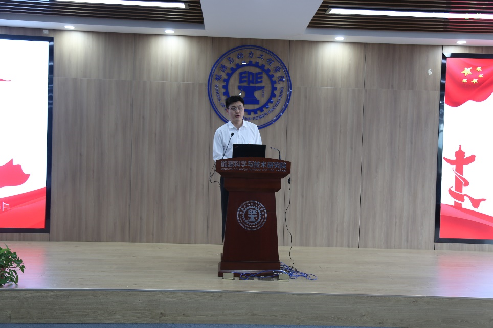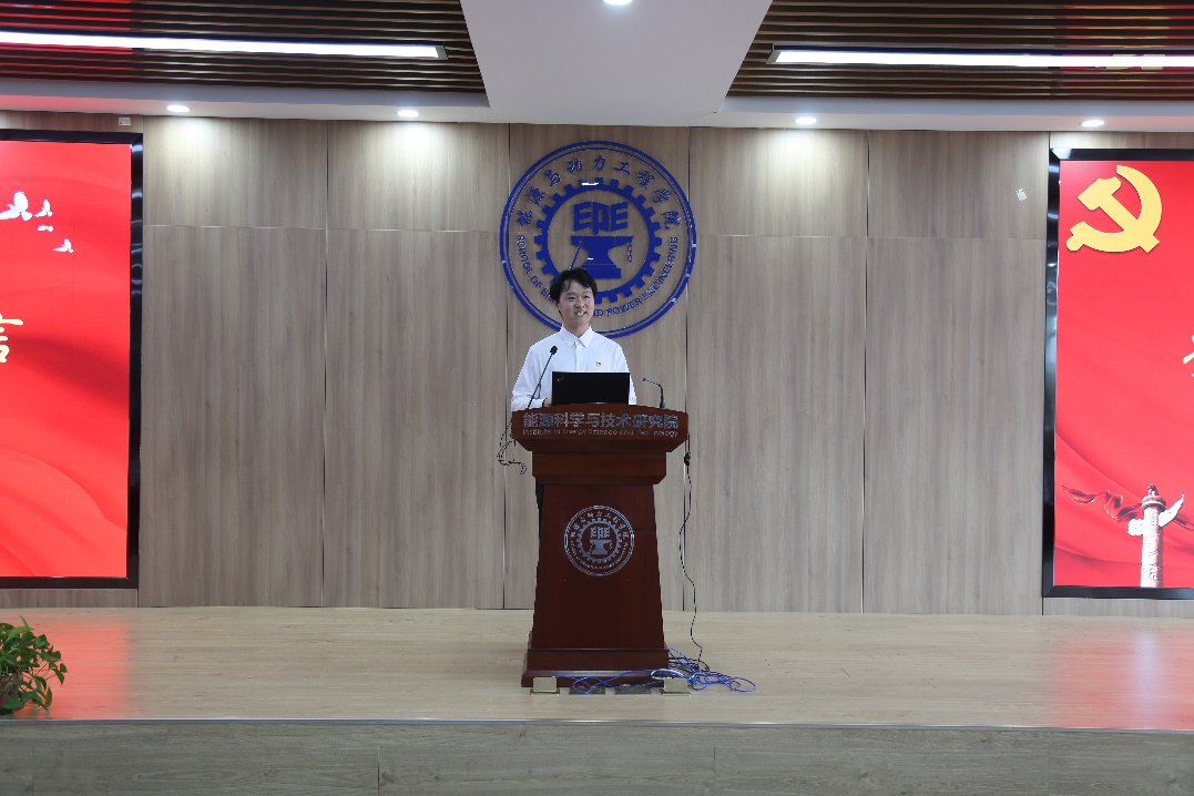 先进党支部代表从支部基本情况、科研学术担当、组织生活、党员模范及支部工作成效五个方面介绍了可再生与替代能源研究部师生联合党支部的优秀事迹。他表示新时代新使命新贡献,可再生党支部师生成员将以建设新时代能源强国为己任,踔厉奋发,砥砺前行,为实现中华民族伟大复兴贡献属于交大人的能源篇章。