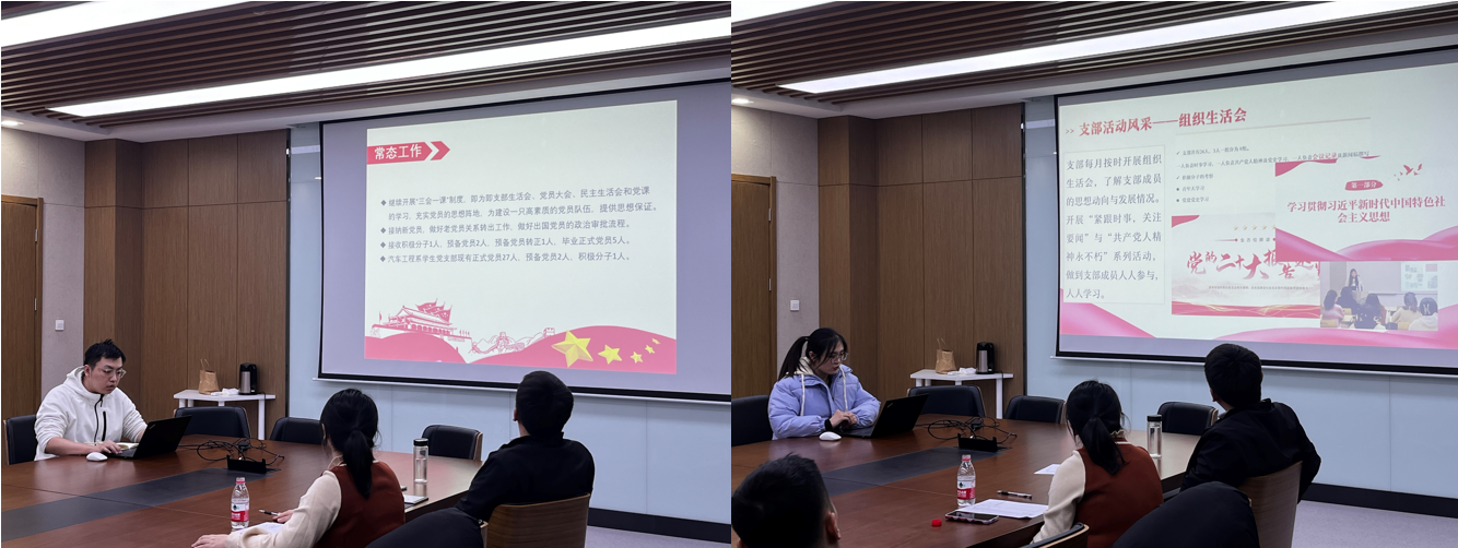 以硕3050党支部、硕3059党支部为代表的横向党支部在介绍支部党建工作的同时,更提出党支部同其他学院、高校以及企业党支部联系与沟通的想法,开展丰富多样的支部活动,进一步提高支部成员参与的积极性。硕2045党支部书记刘泓炫表示,“党支部形成了‘党支部第一责任人-二级负责人-党员-群众’的四级责任体系,深化党团班一体化架构,高效开展党内工作。”硕1034党支部书记任纪霖表示,“作为毕业班党支部,我们要充分利用好身边的资源,为其他低年级党支部提供职业规划或者就业经验,并开展丰富多彩的线下活动,为党支部的同志们留下一份难忘的回忆。”