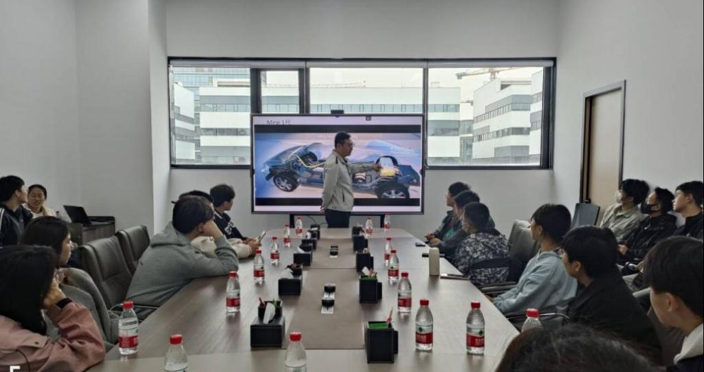 助理教授何璞老师,旭氢时代技术研发部工程师邹文俊、张明昊,旭氢时代人力资源项目总监、交大校友杜晓艳老师分别向同学们分享了氢能项目发展方向、经济效益,目前科研过程中遇到的瓶颈和困难,氢燃料电池与锂钠燃料电池的比较,企业职业生涯规划与个人成长等内容,同学们积极提问,就氢能优势、热管理系统设计、流场板设计、电堆安全等问题与老师们进行了面对面的沟通交流。