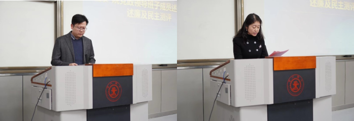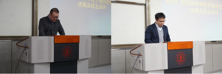 随后,学院党政领导班子成员逐个进行述职述廉,学院教职工按照学校要求对学院班子进行了民主测评。