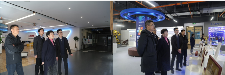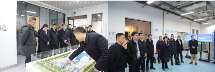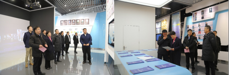展厅。谢永慧教授讲解了敏行楼国家储能技术产教融合创新平台多态协同压缩气体储能实验室和气液互转二氧化碳储能平台;田文喜副院长介绍了中国西部先进核能技术研究院;延卫教授讲解了全自动锂离子电池破解分选回收平台;黄延麒老师展示了躬行楼材料学院情况。