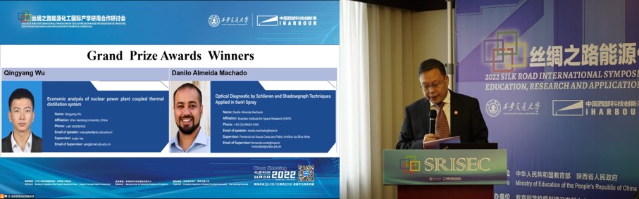 开幕式最后,为表彰在2022年丝绸之路能源化工国际产学研用合作研讨会博士生论坛表现优异的研究生进行了最佳报告奖颁奖仪式。副校长席光为博士生吴青阳和Danilo Machado颁发了特等奖;研究生院副院长龙建纲为Bianka Nagy等4名博士生颁发了一等奖;91国产