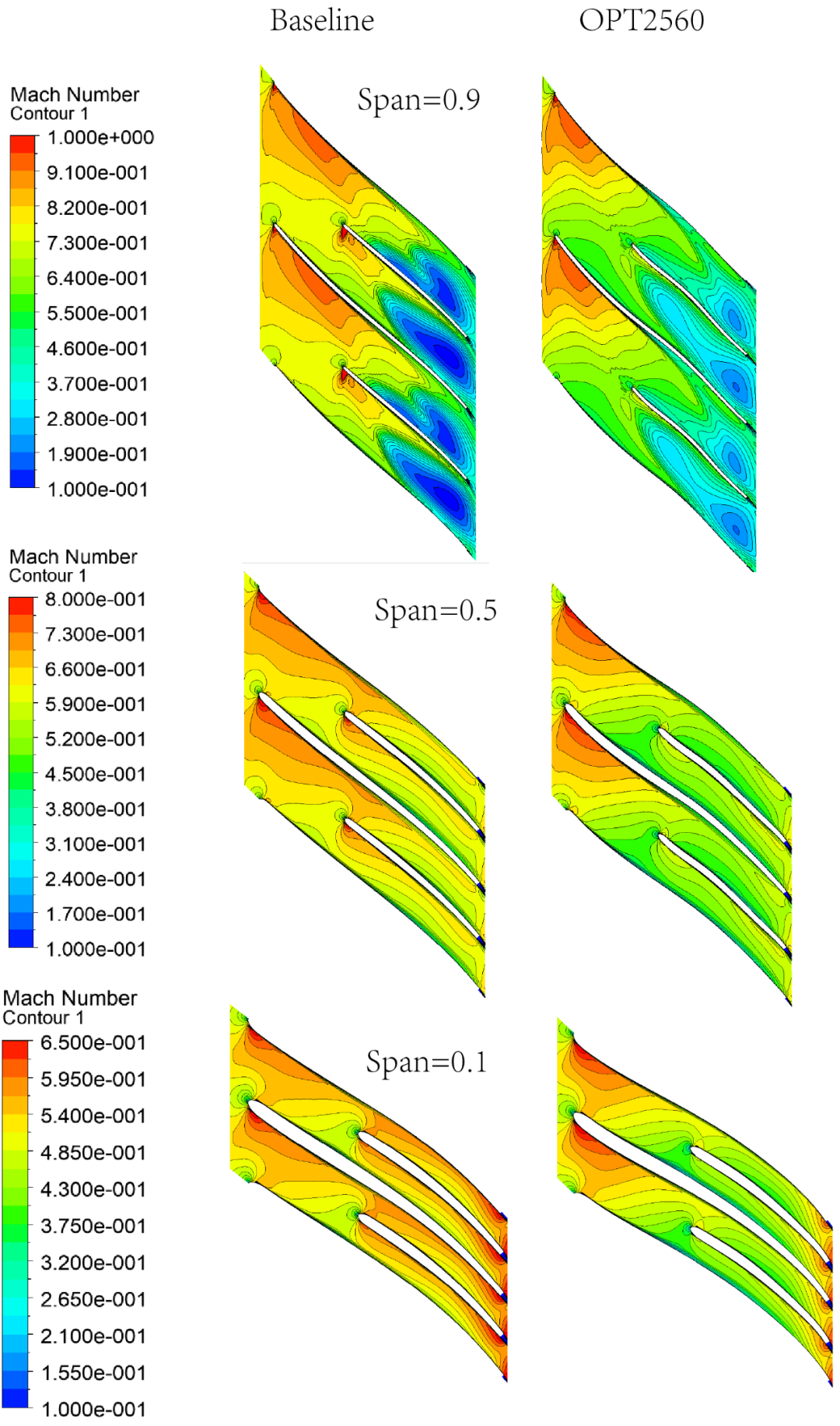 不同叶高处马赫数云图