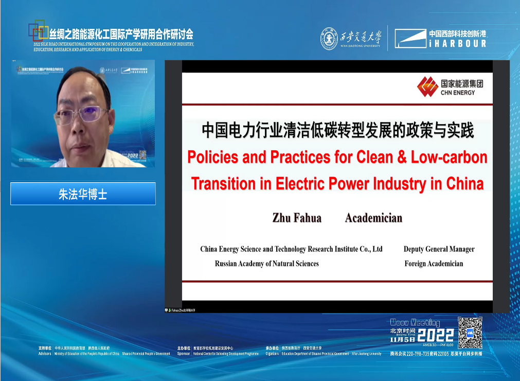 朱法华院士作了题为“Policies and Practices for Clean & Low-carbon Transition in Electric Power Industry in China”学术报告,指出电力行业作为减少污染和碳排放的主力军,对其制定合理的污染和碳排放目标具有重要意义,并介绍了中国电力行业在面向碳减排目标及清洁低碳转型等方面的政策和实践,对未来电力需求以及中国电力工业碳减排提出了展望。