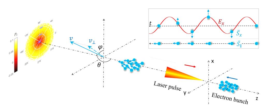 图1. 圆偏振超强激光-电子束非线性Compton散射过程中螺旋度传递过程示意图。