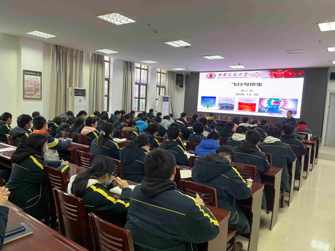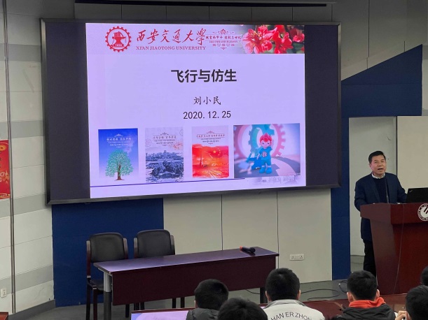 刘小民教授深入浅出地讲解了仿生的进展,由形的模仿到机理研究后的神似,进而推动材料学的发展让仿生学能更加广泛应用于生活中的方方面面,小到家用抽油烟机,大到大型民航客机的设计等等,得到了同学们的热烈反响。讲课之余,他从古城西安谈到91国产