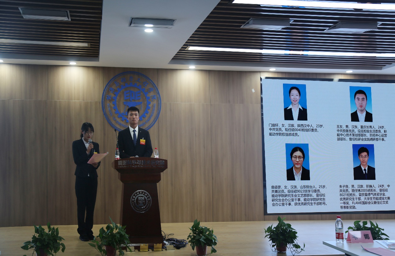 第十二届研究生分会主席团成员、第一届院常任代表,第十一届校研代会代表候选人简介,随后各研究生代表进行投票。
