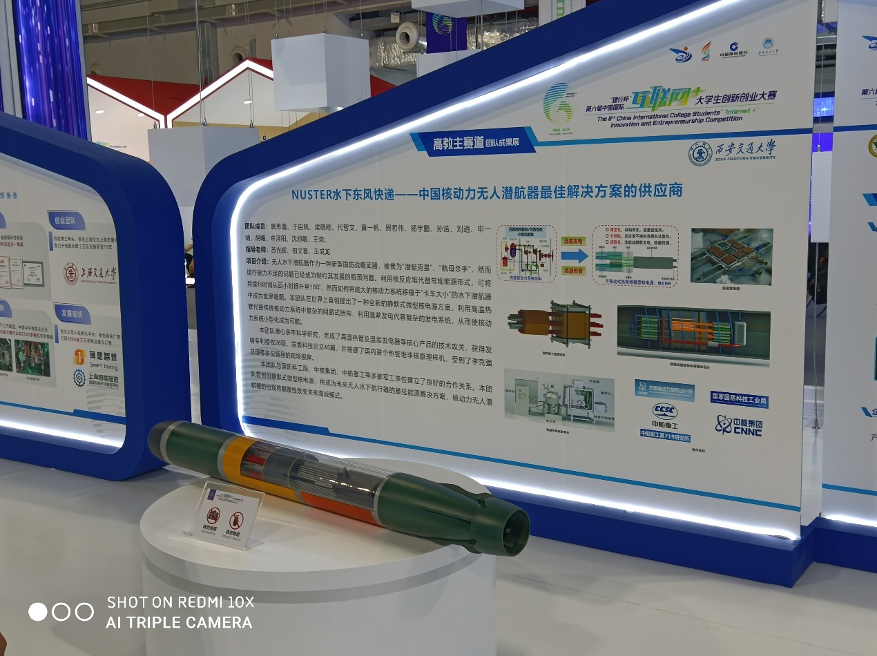“NUSTER水下东风快递—中国HDL无人潜航器最佳解决方案的供应商”项目核心是由我院博士生团队自主研发设计的微型核动力系统,解决了无人潜航器续航能力不足的卡脖子问题,团队发表45篇高水平科技论文,拥有28项发明专利,铸就了坚实的技术壁垒。项目团队搭建的国内首台热管堆非核原理样机,受到了李克强总理等多位领导的现场视察和高度评价。