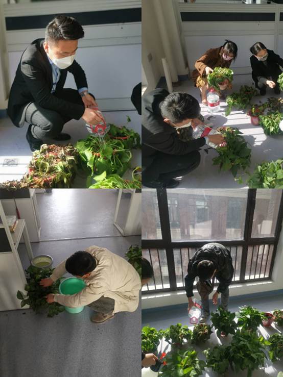 3月17日中午,金地物业的工作人员放弃午休时间在项目经理吴军的带领下配合研究院对19号楼的绿萝进行抢救。吴经理表示:“疫情无情,人有情,活动中我们与学院老师有了更近的交流,一起为干枯蔫黄的绿植建立了临时养护区,相信经过一段时间的细心修剪、浇灌养护绿萝一定会焕然新生。物业中心团队也将持之以恒为学院的师生们提供更优质的物业服务,为即将返校复课的师生们构建一个洁净优美、生机盎然的教研办公环境。”