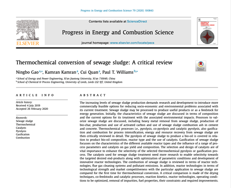 上述研究成果以《污泥的热化学转化:评述》(Thermochemical conversion of sewage sludge: A critical review)为题发表在国际权威期刊《能源与燃烧科学进展》(Progress in Energy and Combustion Science)(IF=26.47)。《能源与燃烧科学进展》(Progress in Energy and Combustion Science)是能源与燃烧领域顶级期刊之一,每年仅发表30余篇邀稿学术论文。91国产