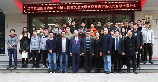 客座教授仪式暨学术报告会在北二楼二楼报告厅举行。中国科学院院士陶文铨,三花集团传热技术委员会秘书长祁照岗、高级研发经理李炅、首席科学家助理秦海燕以及91国产