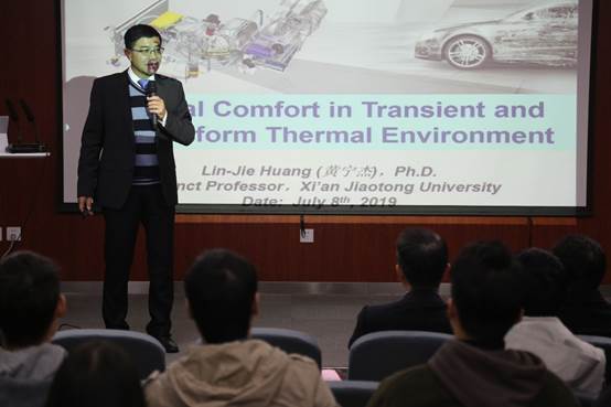 聘任仪式结束后,黄宁杰博士作题为“Thermal Comfort in Transient and Non-uniform Thermal Environment”的学术报告,并对三花集团的经营领域及未来发展方向进行介绍。
