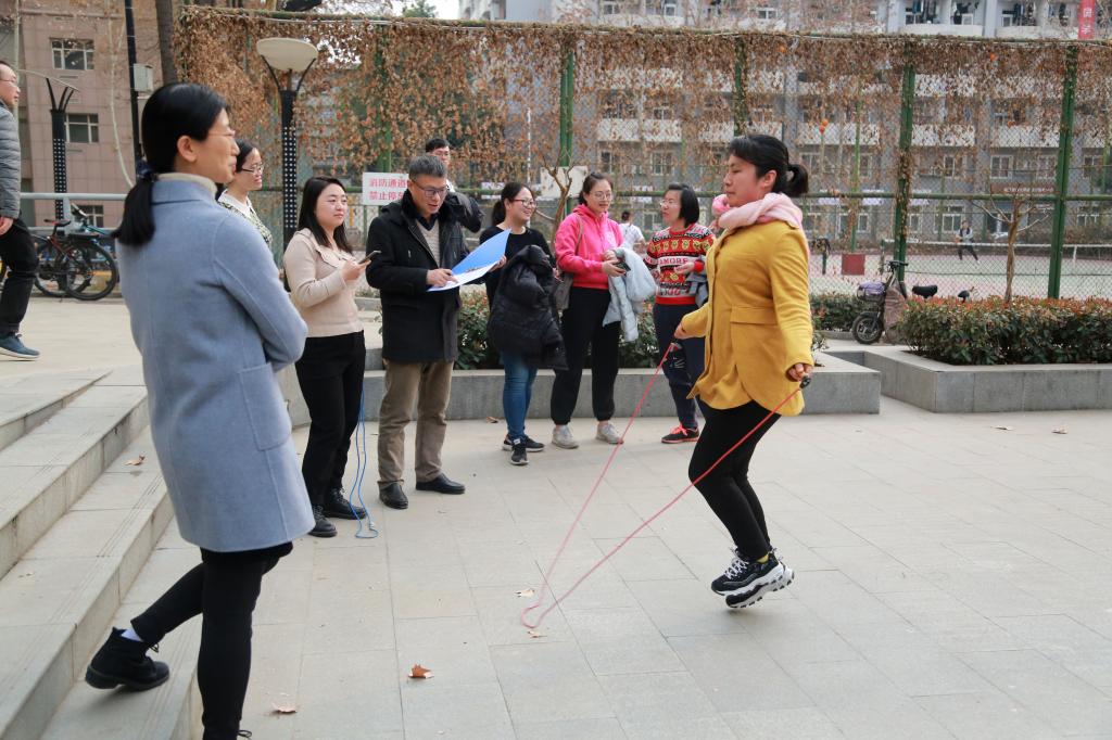 比赛由院工会主席王海军主持,工会委员和工会小组长到场助威。比赛按年龄分为青年、中年两个组,选派6名裁判组成裁判组,分别负责记时和记数。女教工们本着重在参与,积极进取的态度参加比赛,比赛既竞争激烈又气氛友好,加油声欢笑声此起彼伏。比赛中裁判员认真负责,啦啦队热情助威呐喊。经过激烈竞争,产生一、二、三、四等奖,院工会予以嘉奖。何雅玲院士从百忙中抽时间参加了比赛,参加比赛的女教职工60余人,占91国产