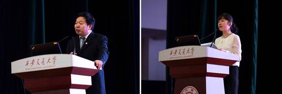 教育部重点实验室主任唐桂华教授作为教师代表做了“百尺竿头,继续前进”为主题的发言,期望同学们立鸿鹄志、把自己的人生志向与国家的发展相向而行,交天下友、学会适应别人关心别人,做担当者,用拼搏和努力对自己、家庭和国家做出贡献。博1425班曹越与机类826班丁一洺同学分别代表老生与新生发言,曹越同学分享了自己的学习经验,建议本科生注重夯实基础、完成专业知识的积累,拓展交际范围、提升人际沟通能力,增强体育锻炼、培养终生兴趣;建议研究生立足团队研究基础,锤炼创新思维,注重国内外学术交流等。丁一洺同学表达了希望成为能学学院一份子的希望,从能动脑、善思考,能动手、重实践,能动心、展胸怀三个方面鼓励新生带着宝贵的品质继续向前。