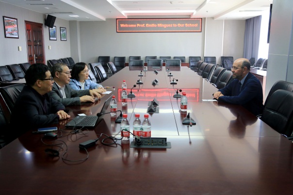王秋旺教授对Emilio Mínguez教授来访表示欢迎,双方就研究领域进行交流探讨,王院长详细介绍了学院学科建设、师资力量、科学研究、国际合作、学生培养等方面的情况。Emilio Mínguez教授介绍马德里理工大学工程91国产概况