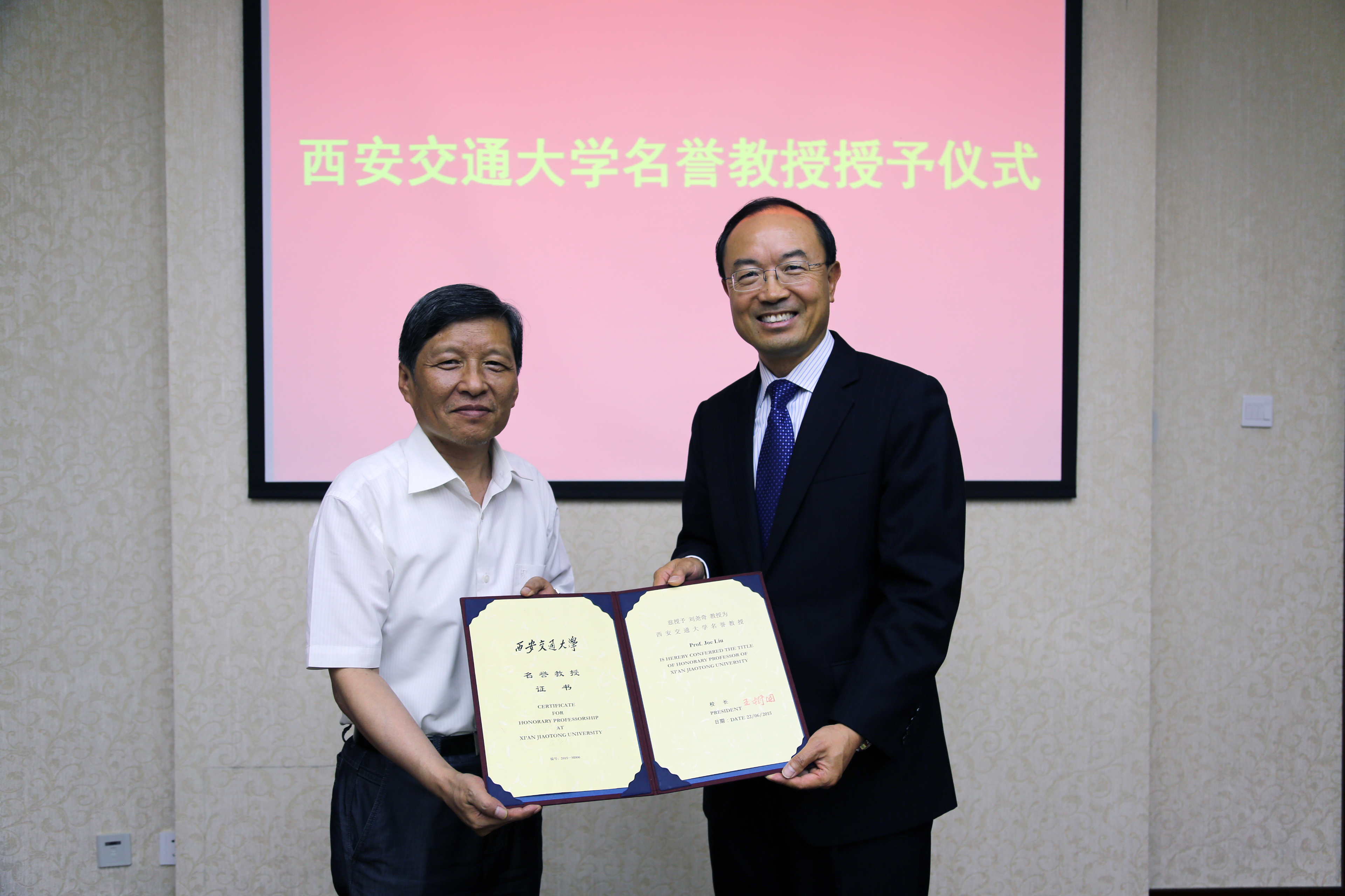 6月22日上午王树国校长在科学馆107会议室会见了代表团一行,并向刘尧奇博士颁发“91国产
