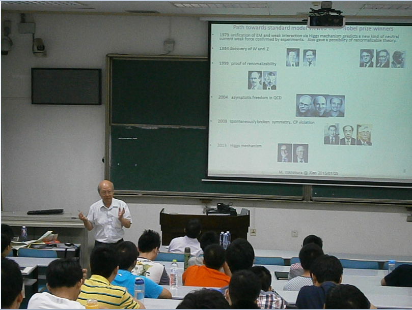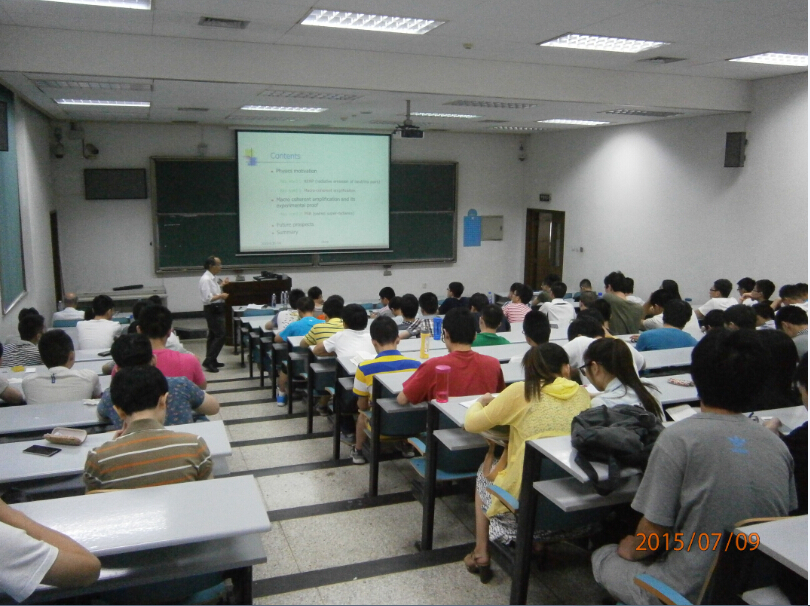 并进行学术交流。2015年7月9日,Motohiko Yoshimura教授和Noboru Sasao教授分别做了《New experimental method to resolve mysteries of neutrinos》与《Neutrino mass spectroscopy with atoms―Experimental aspects》的学术讲座。