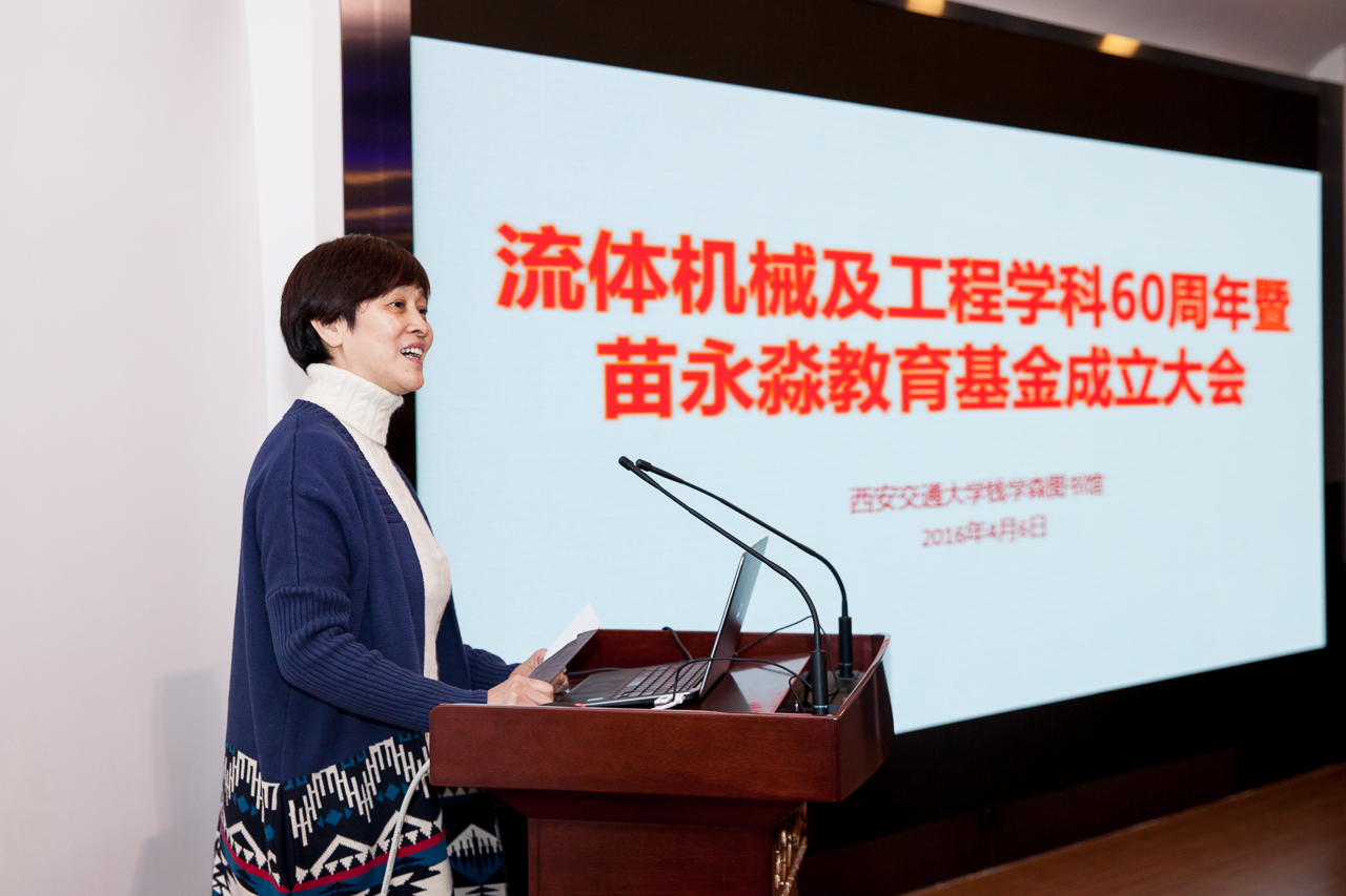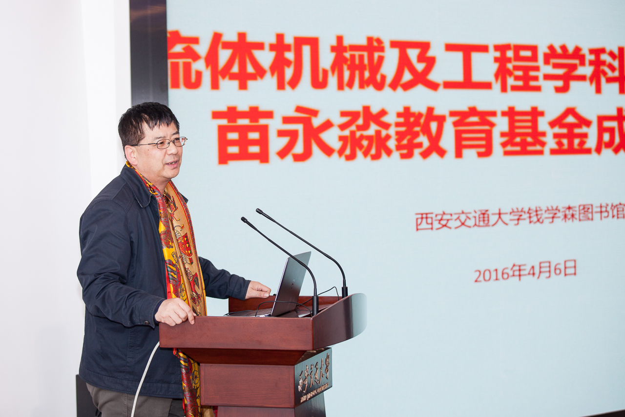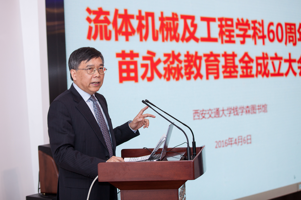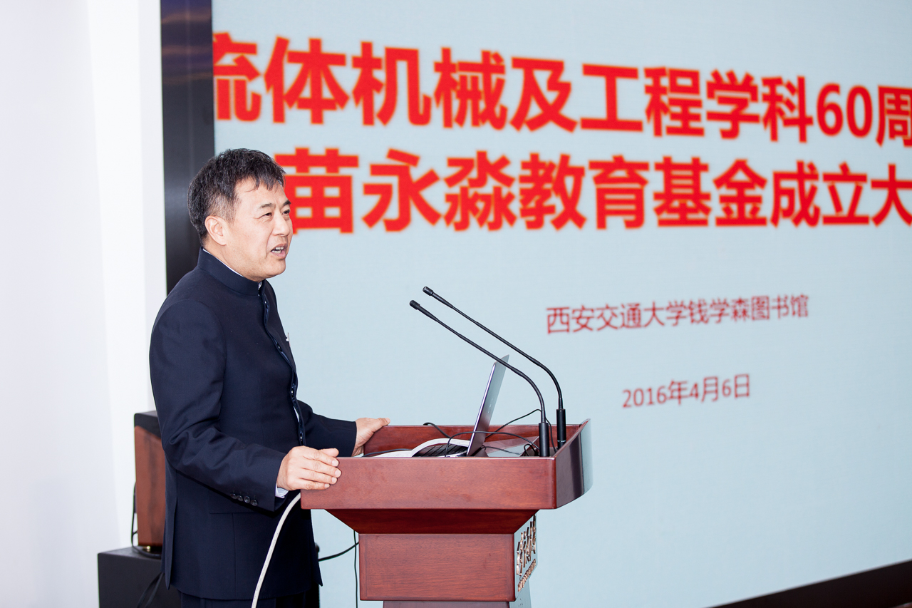 郑庆华副校长首先代表学校致辞,对流体机械及工程学科成立60周年来取得的成绩表示祝贺,对支持成立苗永淼教育基金的捐款企业、校友们表示感谢。