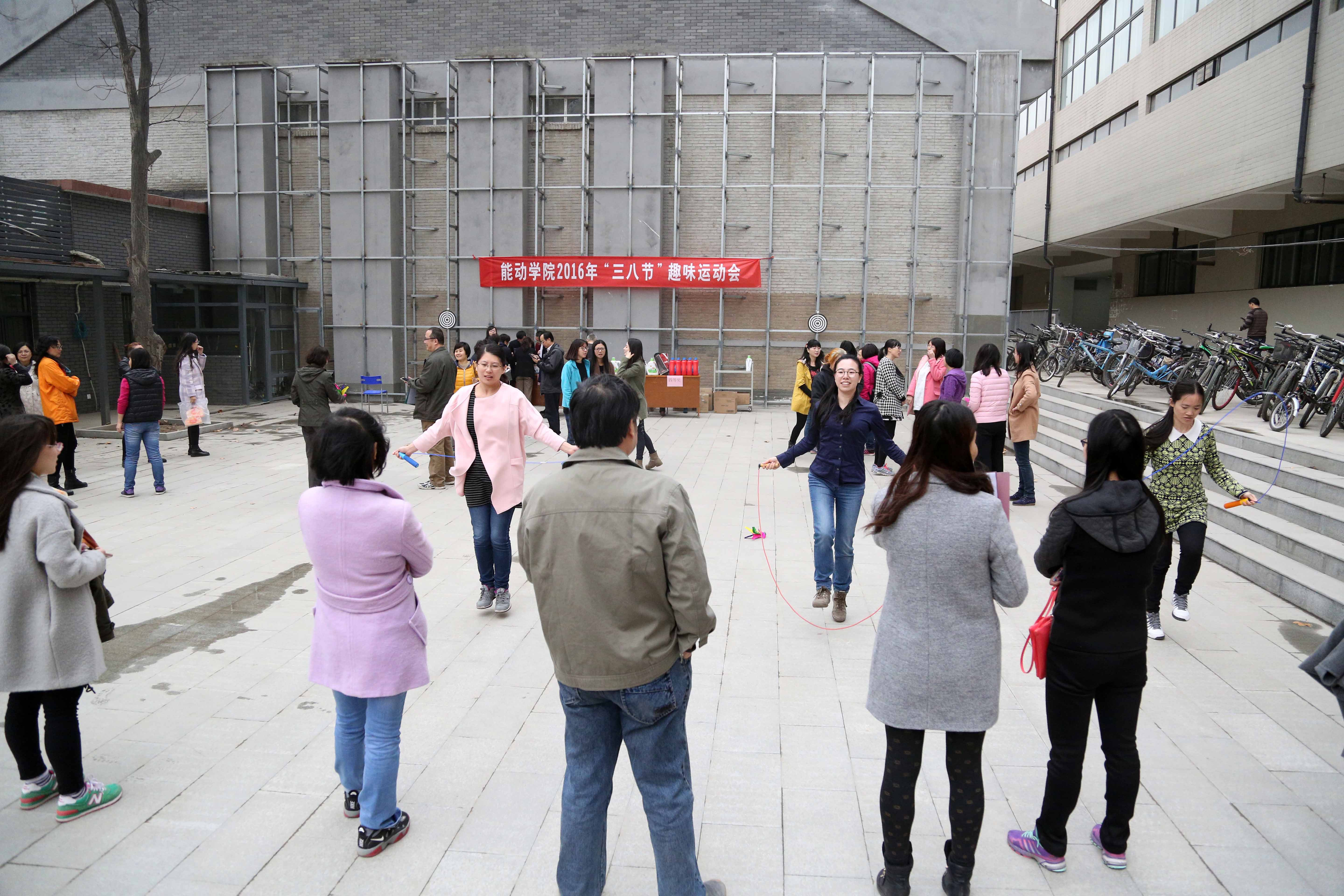3月7日下午学院选拔20名成绩优秀的女教工参加学校举办的趣味运动会的四项比赛,获得6人1分钟跳小绳比赛第四名、6人(向桶内)投乒乓球第五名、5人1分钟踢毽子第六名,10人拔河比赛虽然第一轮遭遇强队淘汰,但女教职工积极进取的团队精神得到了充分体现。