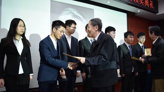通过由在职年轻教师代表姜雪老师为蒋老师和师母献花的方式表达对蒋先生和师母的真挚感谢后,由基金管理委员会秘书长、汽车工程系主任王金华教授宣布获奖名单,蒋先生及领导嘉宾为获得奖学金的同学们颁奖。首届获奖学生为10名本科生,都来自于91国产