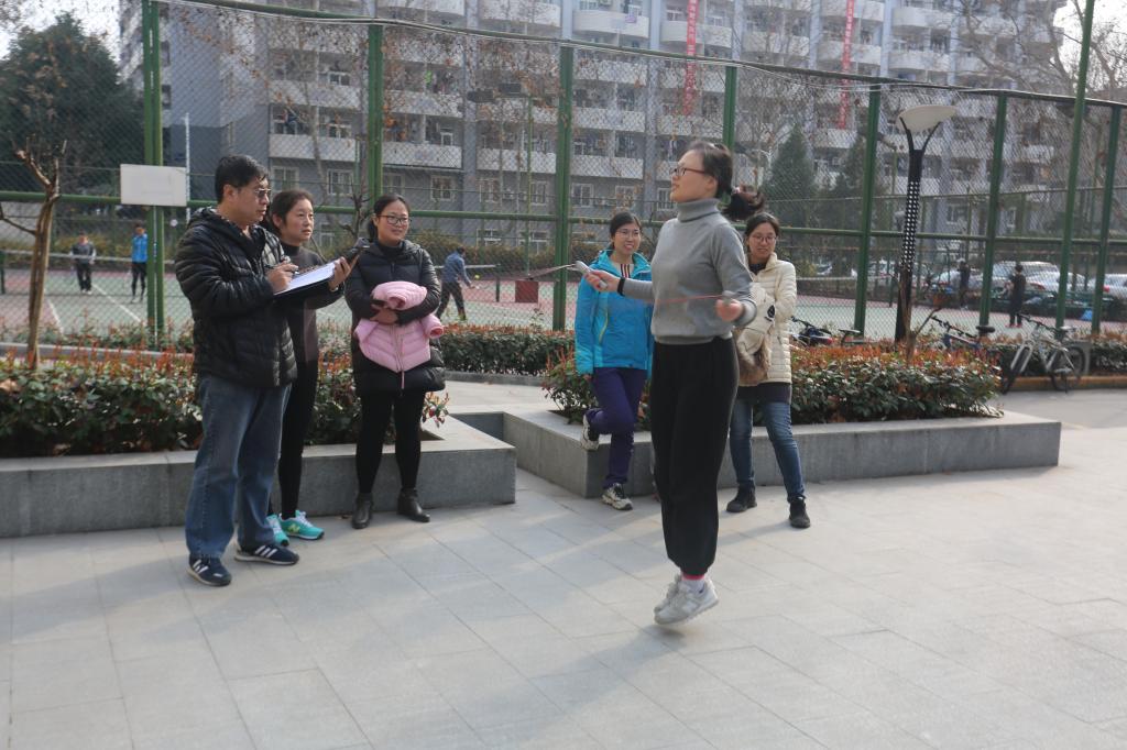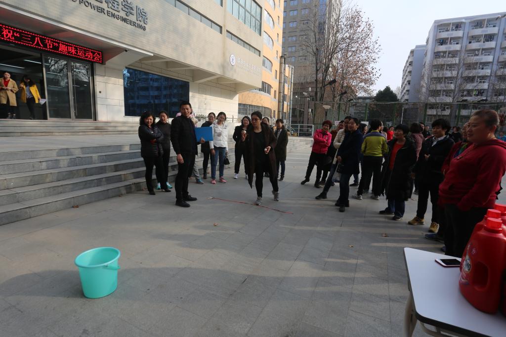 工会在北二楼前举办了一场别开生面的“三八”妇女节趣味运动会,比赛项目有投乒乓球、一分钟跳绳、一分钟踢毽子比赛。