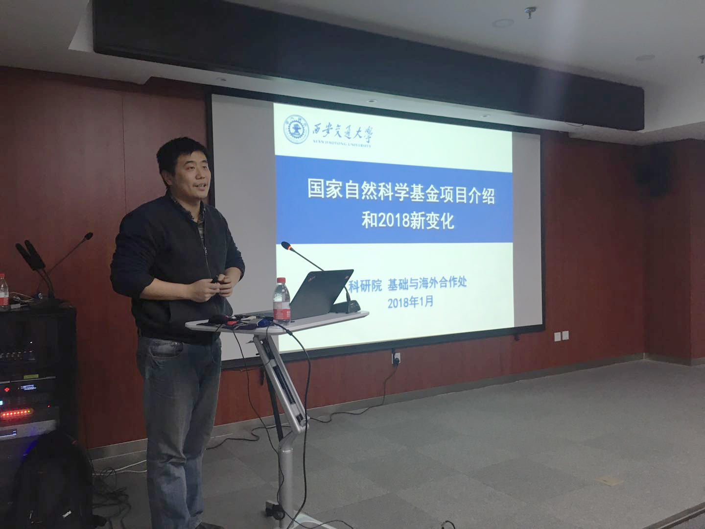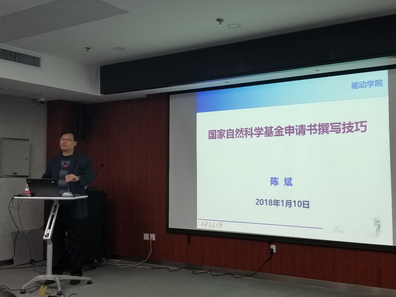 1月10日下午,学院在北二楼报告厅组织召开了“2018年度国家自然科学基金申报指导交流会”。会议邀请多相流国家重点实验室副主任陈斌教授、科研院基础与海外合作处主管何会老师为拟申报国科基金的教师和同学们进行了专题指导讲座。交流会由91国产