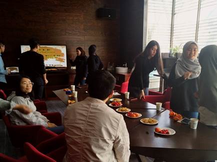 活动以支部书记陆韵伊对“一带一路”的倡议拉开了序幕。座谈会上,支部同学们以幽默风趣的自我介绍开始了和留学生们的交流。在活动中,支部成员通过介绍中国的文化习俗,用英语认真地解释着她们的提问,不时教留学生中文字词的正确发音,让各留学生能实用地锻炼自己的口语,把座谈会的气氛引向高潮。活动中,大家还纷纷介绍了家乡的特色美食和历史文化,来自摩洛哥、马来西亚和伊朗等国家的留学生们也热烈回应,不时提出问题和看法,把他们国家的节日和地理位置作了展示,为他们的文化和习俗感到自豪。