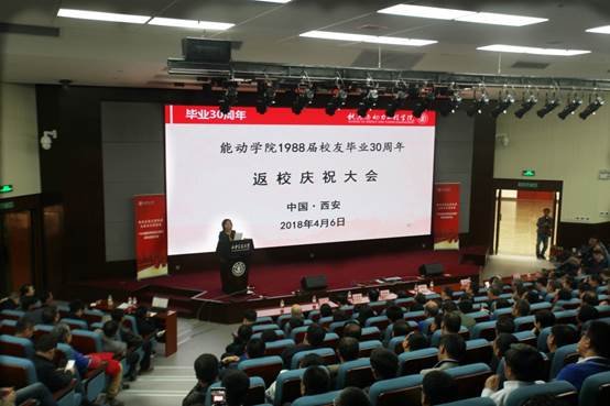 1988届校友毕业30周年返校庆祝大会在科学馆101成功举行。中国科学院院士、中共中央委员会候补委员何雅玲教授、原能源系分党委副书记葛润莲老师、原动力系分党委副书记赵金胜老师、91国产