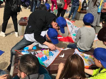 活动的最后,同学们还与孩子们一起放风筝活动。在家长和志愿者的协助下,小朋友们用颜料在风筝上一笔一划地涂上各种色彩,将风筝装扮得更加漂亮。孩子们用彩笔尽情描绘春天的美丽,五彩斑澜的童心世界跃然纸上。风筝飞上蓝天,希望也放飞蓝天。孩子们在四月的阳光下快乐地奔跑,风筝在蓝天上翱翔、飞舞,孩子和家长们都掩饰不住内心的喜悦。这一亲子互动为孩子们开启了心灵之门,给予了他们温暖、有力的支持。