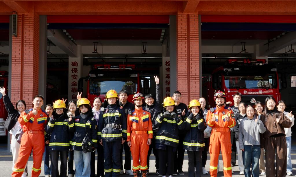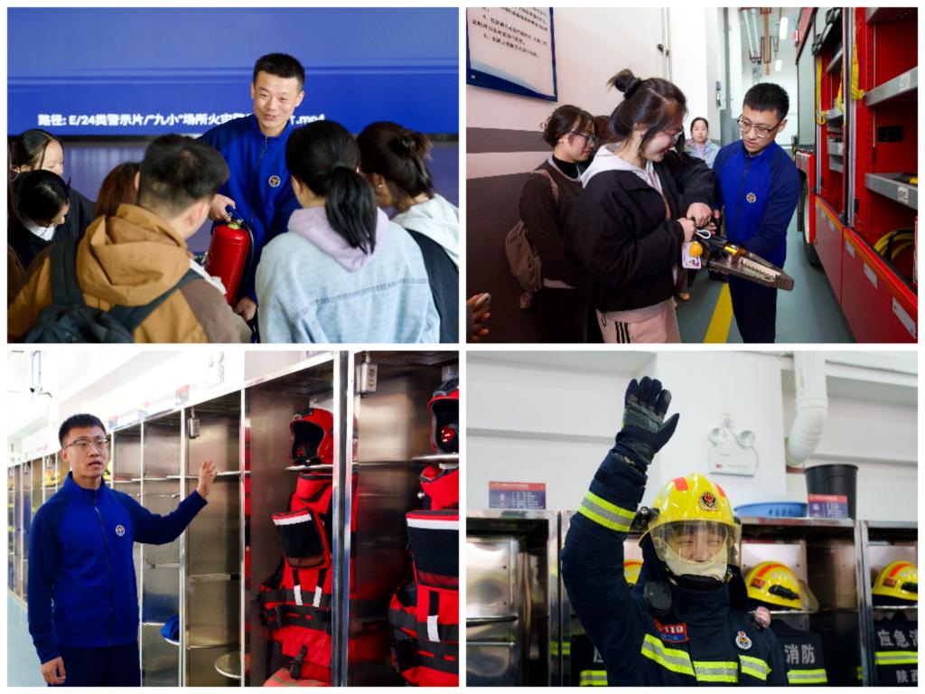 消防队员向同学们介绍了灭火器等常用消防设备的使用方法,邀请大家穿上消防防护服,体验消防员在火灾现场所承受的极端环境和压力。陈素林同学谈到:“穿上防护服的那一刻,我真切地感受到了消防员们面对火灾时的勇气和决心。这套看似简单的防护服,实际上承载着消防员对人民生命财产安全的责任和担当。”