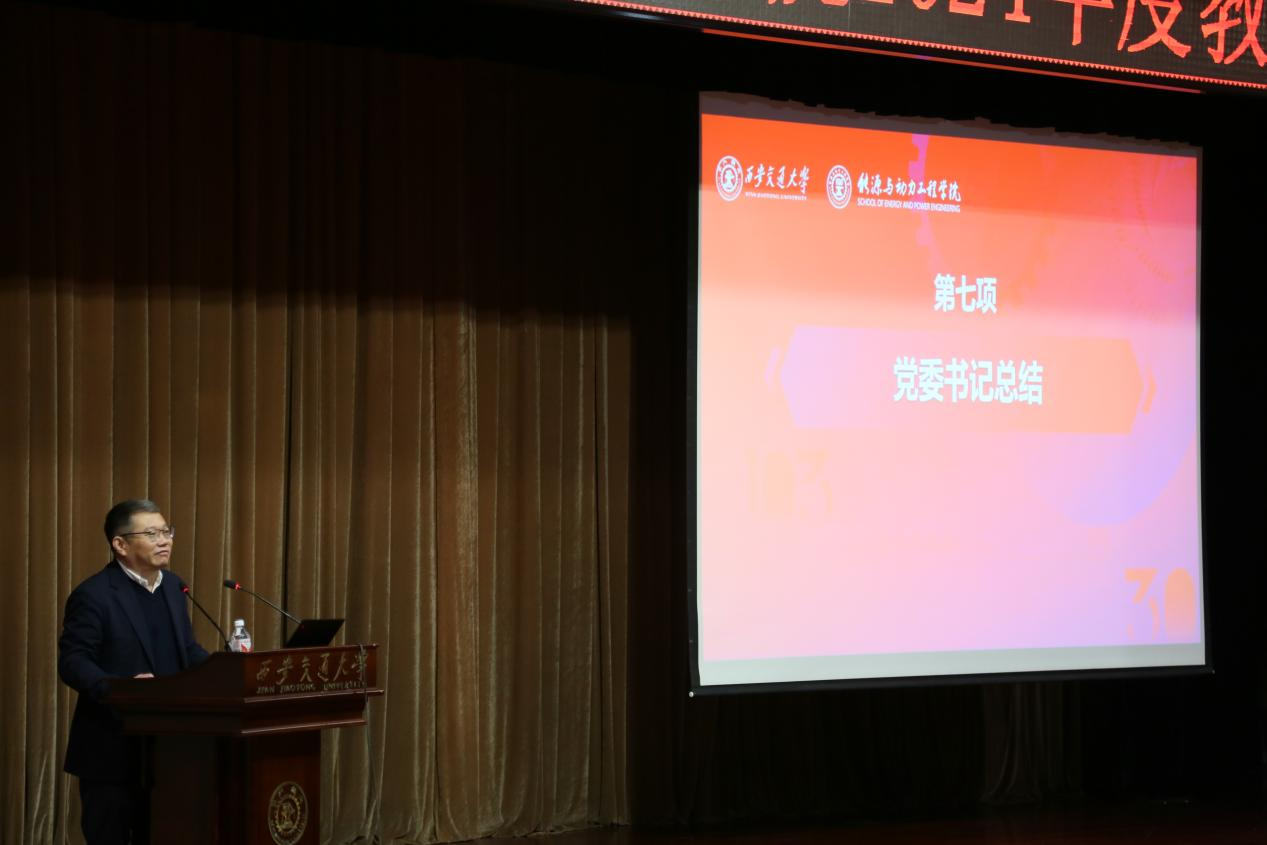 在兴庆校区主楼多功能报告厅召开2024年度教职工大会。陶文铨院士、学院党政班子全体成员及全院教职工出席本次会议,会议由学院党委副书记韦娜主持。