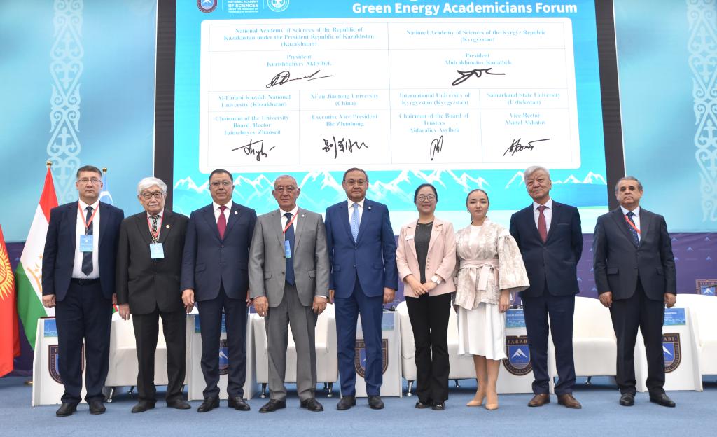 、阿里-法拉比哈萨克国立大学、撒马尔罕国立大学、吉尔吉斯国际大学以及哈萨克斯坦、吉尔吉斯斯坦国家科学院共同签署《阿拉木图绿色能源合作宪章》。该宪章旨在建立院士论坛常态化举办机制,强化科研协同创新,推动区域绿色能源合作制度化发展,为共建“绿色丝绸之路”提供长效保障。