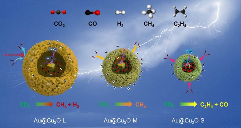 该研究结果以“空腔限域Au@Cu2O卵黄-壳纳米反应器实现可切换CH4/C2H4选择性”(Cavity-Confined Au@Cu2O Yolk-Shell Nanoreactors Enable Switchable CH4/C2H4 Selectivity)为题,在国际著名期刊Nature Communications《自然-通讯》上发表。91国产