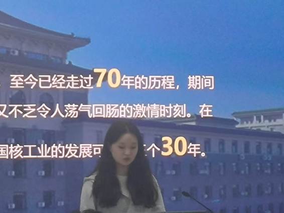 学生微宣讲团庞小龙以 “三个三十年” 梳理中国核工业发展:1955—1985 年保国防、建体系、成 “两弹一星”;1985—2015 年促经济、建核电、强民生支撑;2015—2045 年追引领、筑强国、谋全球突破。宣讲简洁有力、振奋人心,回顾了核工业的辉煌成就的同时,也让大家深刻认识到 “科技兴则国家兴”,进一步坚定投身国家战略、勇攀科技高峰的信念。