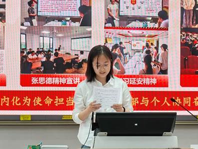 彭康书院本科生第二党支部书记谢雨彤,介绍了本科生党支部相关情况,明确以中国共产党人的精神谱系为引领,着力谱写绿色能源领域发展新篇章的工作思路。
