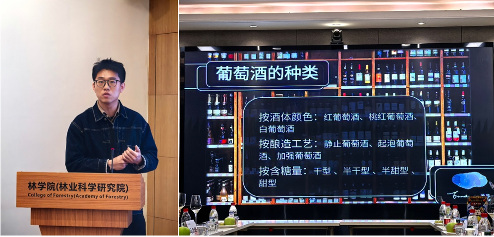 西北农林科技大学葡萄酒爱好者协会向座谈师生介绍了中国葡萄酒的文化底蕴和历史溯源,围绕葡萄酒的类型以及品鉴方法等为同学们生动形象地讲解了葡萄酒的基础知识,同时带来各具特色的优质葡萄酒供师生边学边品。