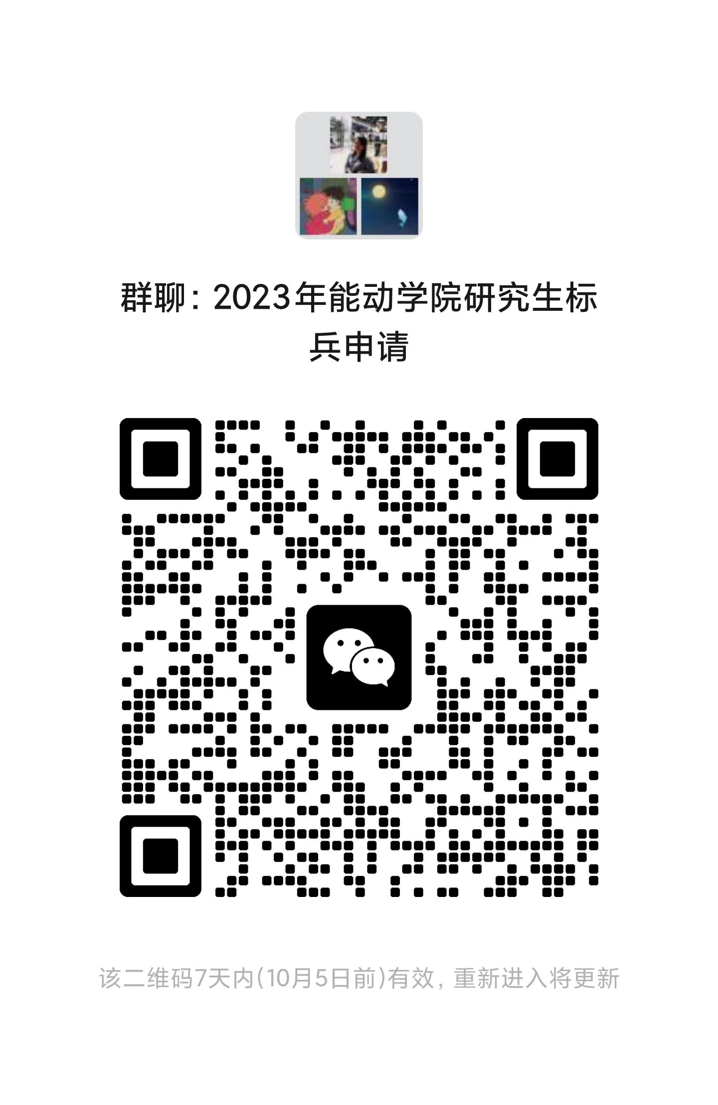 4.请有意向申请的同学,于2023年10月6日18:00之前将附件1和2电子版发送至[email protected],并扫描二维码进群,并提前准备好PPT,学院预计在国庆节后组织答辩。