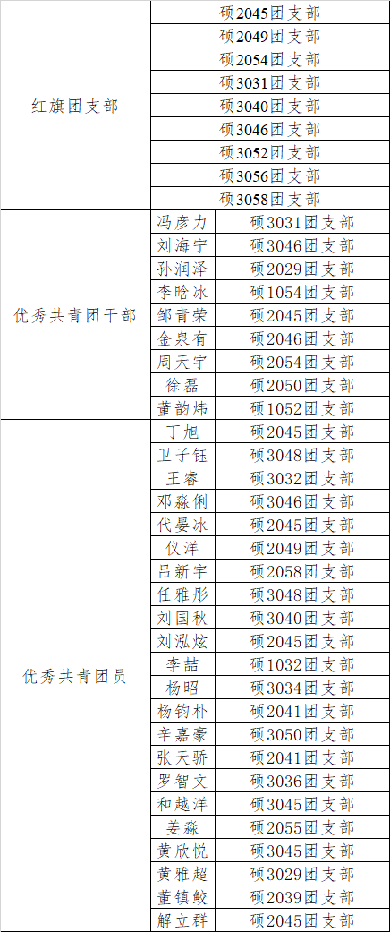 根据《关于开展2024年五四评优工作的通知》西交团【2024】6号,通过个人申报、团支部审核推荐及学院团委评审,学院团委拟推荐以下团支部、团干部、团员为校级五四评优表彰对象,名单如下(按笔画顺序排序):