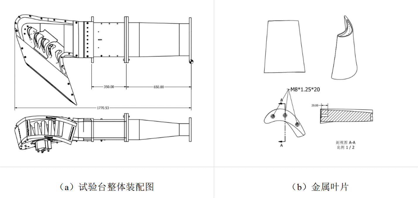 静态环形叶栅试验台及试验件加工项目,包括:静态环形叶栅进气过渡流道及主流整流栅格一体化设计及加工;静态环形叶栅主流流道金属基座一体化加工;静态环形叶栅透明盖板及侧板加工;带叶顶凹槽的金属叶片一体化加工(2套);带叶顶气膜孔、端壁装配间隙及离散气膜孔、尾缘劈缝的动叶叶片试验件一体化加工;静态环形叶栅试验台整体安装及应力强度测试;静态环形叶栅试验台综合气密性测试;1套。