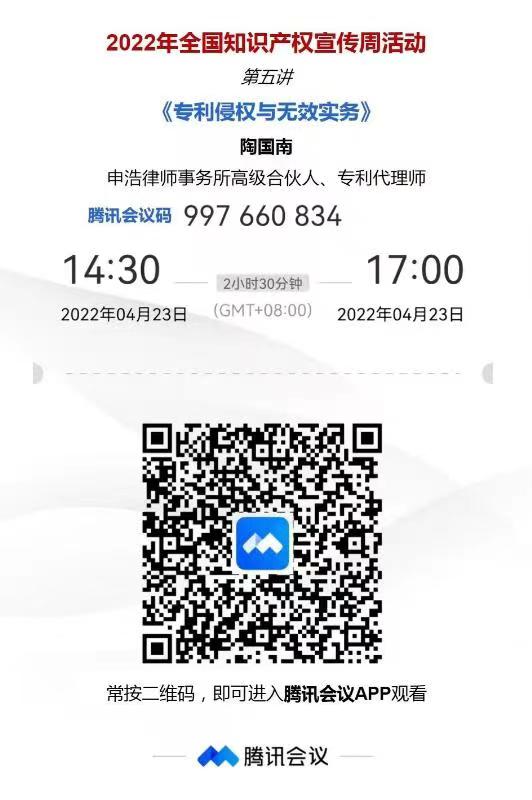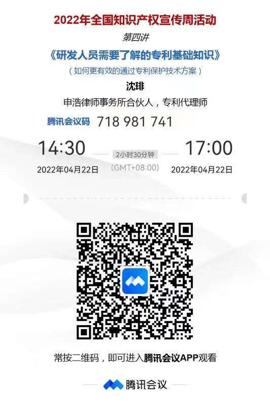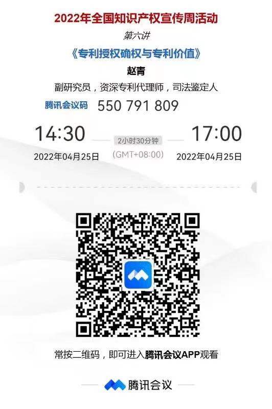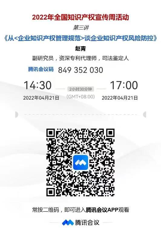 为深入贯彻落实习近平总书记关于知识产权工作的重要指示论述,增强全社会尊重和保护知识产权的意识,积极推进知识产权强国建设,高效促进知识产权运用,激发全社会创新活力,推动构建新发展格局,根据中国科协要求,西安市科协组织开展2022年知识产权宣传周活动(4月20日~4月26日)。活动将面向全市广大科技工作者,采取线上方式、稳妥有序地开展知识产权宣传活动。请大家根据各自工作实际需要收听观看。附件是宣讲二维码,有需要的老师可以自行观看。
