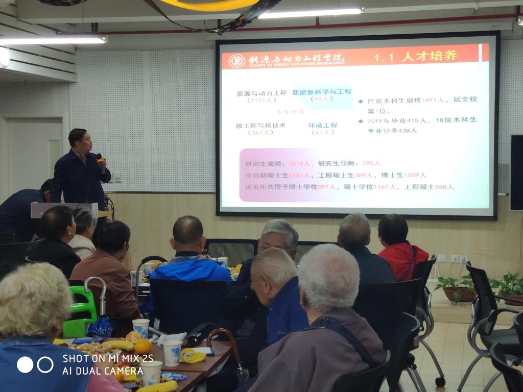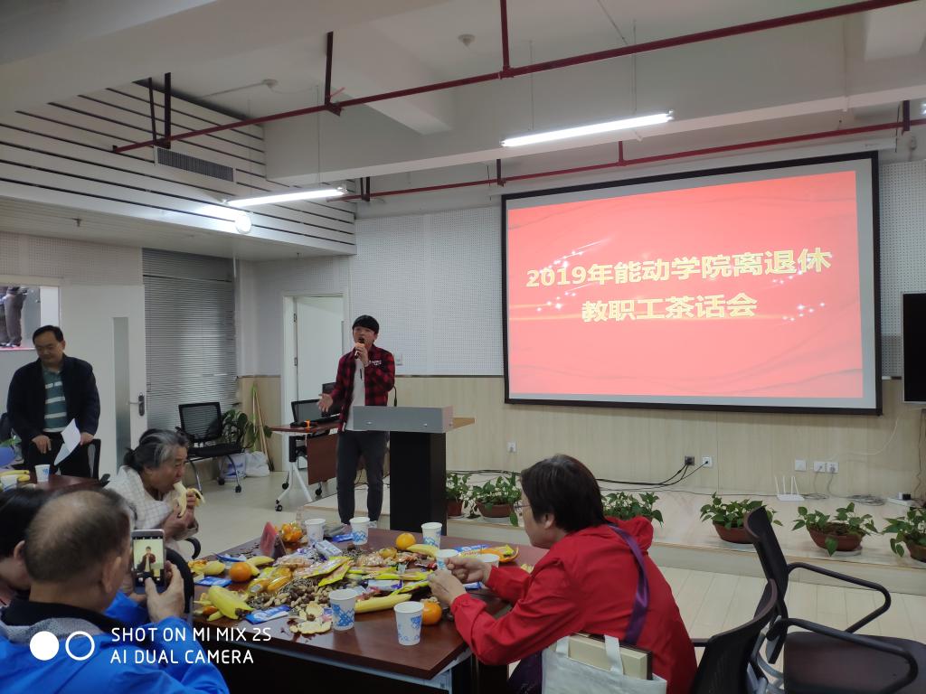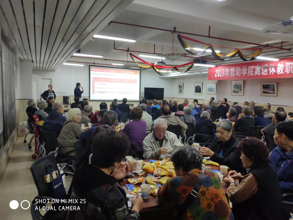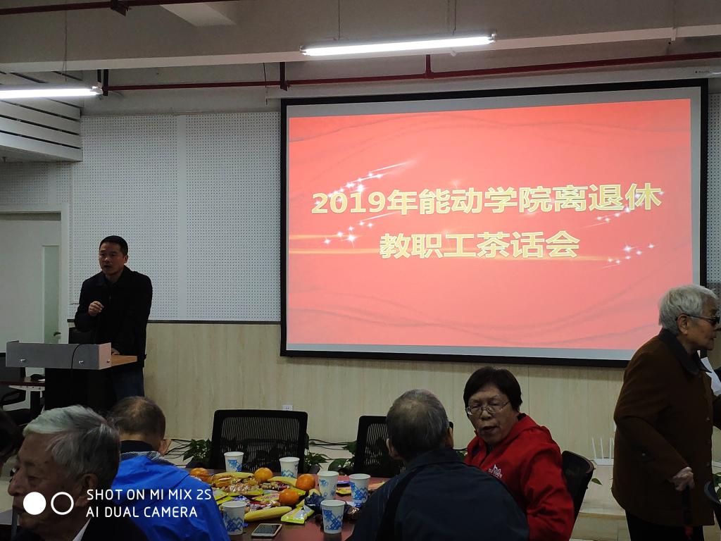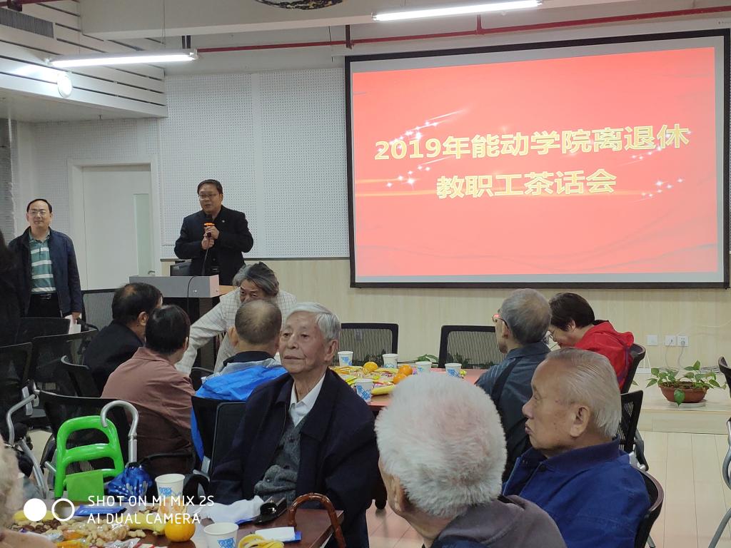 离退休教职工致以了节日的问候,同时鼓励老同志积极发挥余热,释放正能量,作出新贡献。何茂刚书记代表学院党政工向离退休教职工表示了节日问候,并祝福老同志们生活美满、身体健康。院长严俊杰教授向到会的老师们汇报了学院过去一年在科研、教学改革、人才培养、队伍建设、学科发展等方面取得的成绩,并重点介绍了学院在双一流和创新港建设方面的发展规划,希望离退休教职工能够继续为学院再铸辉煌献计献策、贡献力量。离退休教职工代表祁大同教授发言,对学校学院蒸蒸日上的发展和不断取得的成绩感到高兴,对学院对离退休教职工关心表示感谢,代表离退休同志表示将继续为学院各项工作添砖加瓦。