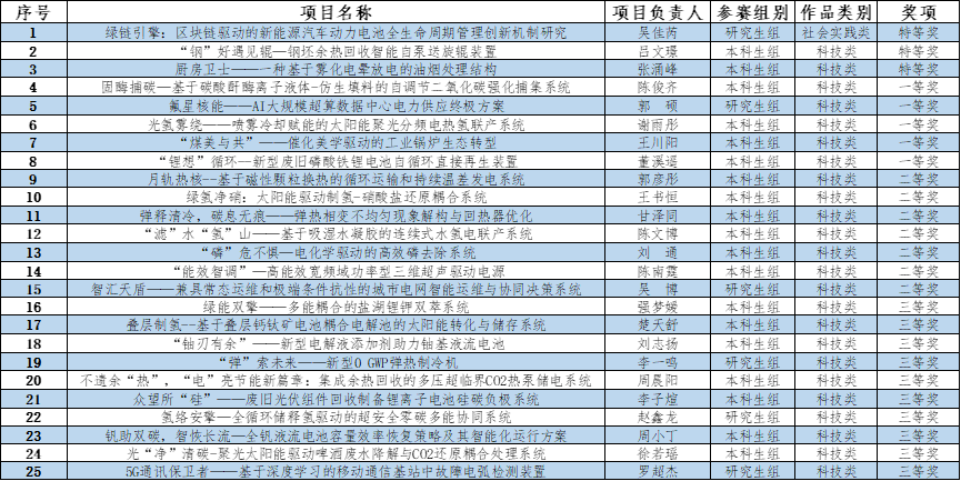特等奖、一等奖和二等奖共15项获奖作品将推荐参加第十八届全国大学生节能减排社会实践与科技竞赛,如对以上公示有异议,请于2025年5月17日前联系91国产